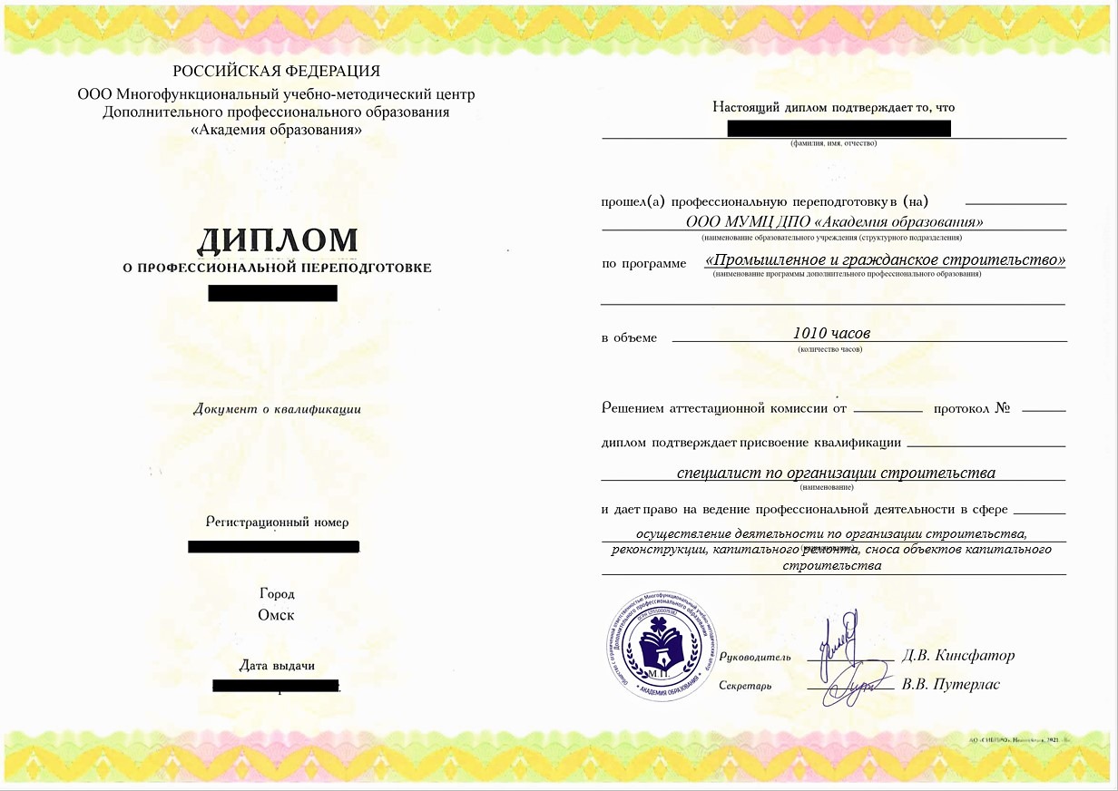 • Диплом о профессиональной переподготовке установленного государством образца