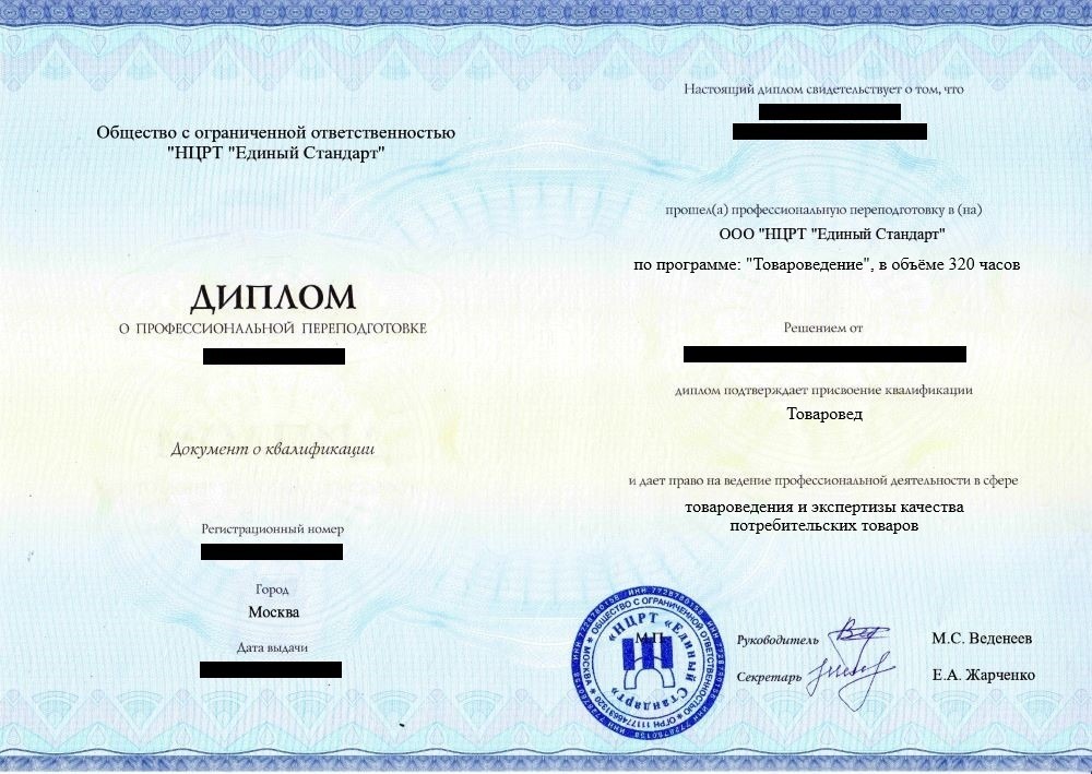 • «Товаровед» с правом ведения профессиональной деятельности в сфере товароведения и экспертизы качества потребительских товаров